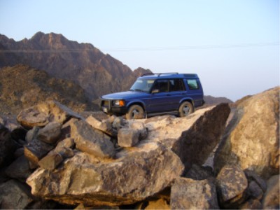 | The lunatic dune bashing vehicle | Suitably dressed for desert adventure! |